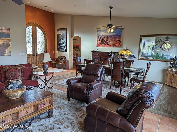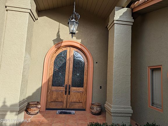 Fine home high up in the very desirable Palisades neighborhood of Sedona. This one is a must see as it has most everything high end buyers coming to Sedona are looking for. A good sized 4 bed/4ba home on a relatively larger parcel ( half acre+) featuring a ''to die for'' private patio with spectacular north facing red rock views. The patio is nicely landscaped and features a hot tub, water feature and a fire pit to enjoy in the cooler times. The patio is walled and offers a very private space to enjoy its views and amenities. Great venue for entertaining. The home features a grand entrance with 10 ft custom doors. The floor plan is split with a large owner's suite on one side of the home and a second large ensuite bedroom and 2 additional bedrooms on the other side. Delightful kitchen featuring fine cabinetry with granite tops, beautiful fireplace, a very spacious walk-in pantry, an island and breakfast nook. Just off of this area is a very large laundry room featuring an electric wall over and a 2nd frig and lots of additional cabinets for storage. From the kitchen area the home flows into the Great Room & formal dining area. Just off of this area is a separate executive office. Red rock views are abundant from inside the home, including from the owner's suite, the kitchen area, the dining area/Great room, plus from the office. I could go on and on. This one is simply a must see.