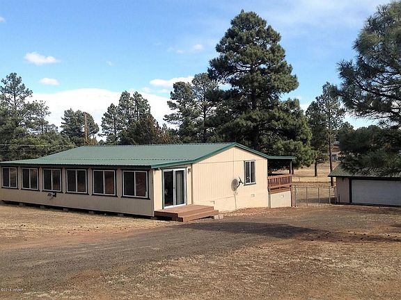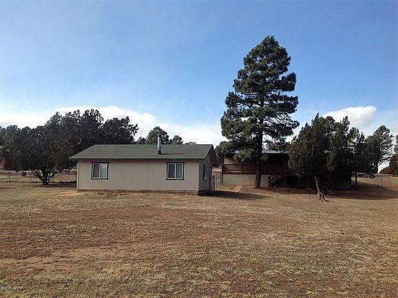 A bit of country living just minutes from Show Low! Enjoy plenty of space on this acre and a half fully fenced lot with mature cedars and pines. Property has two double gates making it easy to pull an RV through. This well-maintained home is set back from the road and has a split bedroom floorplan with an AZ room running the length of the front of the house. Ample covered deck off the rear for BBQs and outdoor entertaining. A woodstove provides toasty heat for the detached 3 car garage. The back section of the property is mostly cleared of trees and is lovely the way it is. But if you like to garden or need room for horses this is a great space. And No HOA! Ask to see this property today!