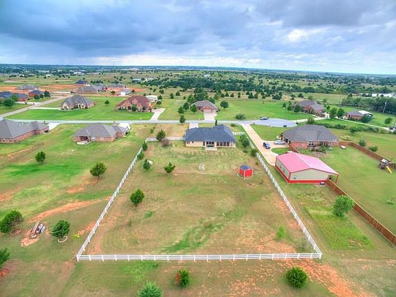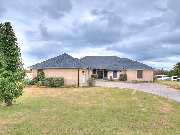 * * * HUGE PRICE REDUCTION * * * Walk into a large open entry facing a formal dining or living area with a 2 sided fireplace to the large casual living area. You will immediately notice the large windows to admire the 1 acre lot with beautiful white fence that perfectly outlines the property. The kitchen is open to the casual dining and living area. The appliances are newer and the refrigerator, washer & dryer, and chest freezer in the garage remain with the property. The master bedroom and bathroom are huge with a jetted tub, 2 sinks, walk in shower, walk in closet, and separate water closet. The study across from the master has great character with wainscoting, wood look tile floor and built in desk. Oversized 2 car garage, plenty of room for 2 large vehicles and yard equipment. In-ground sprinkler system. Storm shelter in backyard 6-8ppl.