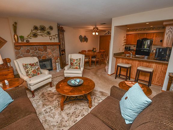 Desirable 1st Floor Ranch Condo close to Pewaukee Lake and great access to Hwy 16! Kitchen, Dining room and Living room all open to each other for ease of entertaining! Kitchen has breakfast counter for ''on the go'' eating! Living room boasts a gorgeous cobblestone fireplace with oak mantel! Two large bedrooms with master enjoying it's own full bath with tub & updated with beautiful granite countertops. Extra bath off of hall also updated with granite counters and has a shower with an in unit stackable washer and dryer! Step out of your private front door onto your cement patio, read a book, relax and enjoy! Very clean and move in ready condo!