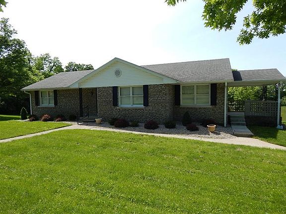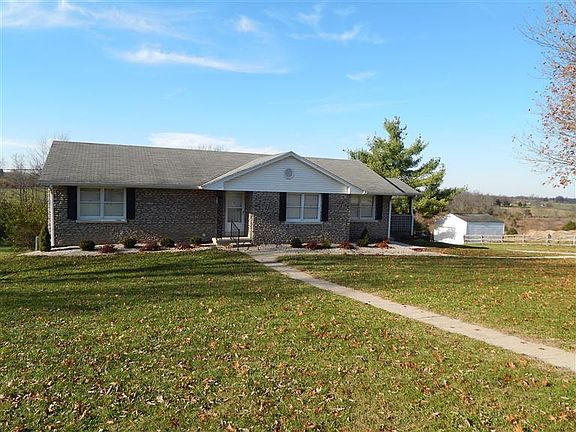 Three (3)bedroom (Maybe 4) Fieldstone Ranch home with a full basement, on 10+ acres. Good bones and nice features including all natural wood work (#1 pine), sparkling hardwood floors throughout the main level, a large eat-in country kitchen with lots of cabinets, a large breakfast counter, and a sizable pantry. Basement level has a nice size Family Room with a stone fireplace, a Rec Room and a Hobby Room, and a full bath. Garage is located around back, it's a 23' x 29' garage with a 1 car overhead door. (Great workshop area). There is also a detached 1 car garage for equipment storage. Enjoy your summer evenings on the covered side porch or the covered patio out back. This home sits on 10 + acres with some fencing and plenty of land to play with. Located apx. 5.5 miles from Jacobsen Park, and apx. 2.5 miles from I-75 @ Clays Ferry. Call for your appointment to see this home. Lexington Kentucky Real Estate, Kentucky Ranch Property, Fayette Co. Farm.