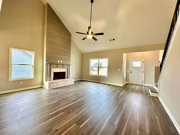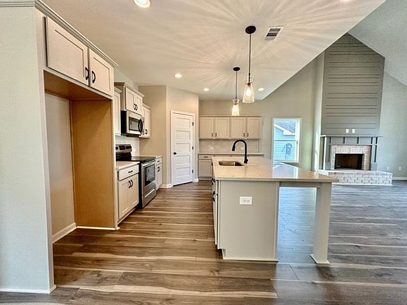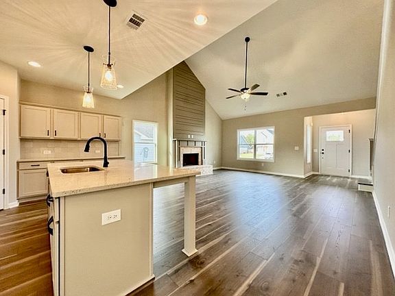 ANNISTON PLAN featuring 5 BEDROOMS and an OPEN CONCEPT! Vaulted family room boasting wood-burning fireplace w/brick surround leading designer kitchen! You'll appreciate shaker style cabinets, granite or quartz counters, tile backsplash, and stainless appliances! The owner's suite is found on the main level and boasts spacious room size, tiled bathroom w/double vanity, garden tub w/tile surround, and separate tiled shower. On the second level, find four guest bedrooms and hallway bathroom. Hard surface flooring is found throughout main level common areas and each bathroom offers tile flooring. Smooth ceilings are found throughout. The total electric construction, FOAM INSULATED ATTIC, and LOW-E windows make this home energy efficient! Enjoy covered rear patio overlooking backyard area. This convenient location offers easy access to beautiful downtown Opelika, TigerTown, and Southern Union. Up to $7,000 Closing costs assistance available when using builder's preferred lender!
