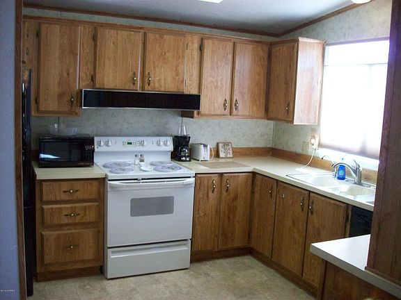 Well cared for manufactured home in desirable neighborhood. Large corner lot, 1989 Cavco double-wide with 2 bedrooms, 2 baths, and laundry-room/office. Nice covered front porch, covered and open rear patio. 2 car attached carport in rear, and detached 10x20 workshop. Plenty of room to park your RV. Vaulted ceilings in Living-dining-kitchen. New gas furnace, and new A/C in 2011. Large master bedroom, with nice walk-in closet, spacious bath with garden tub and separate shower. All appliances are included. Sewer hookup already been completed.Several newer upgraded windows have been installed.Block stem wall skirting.