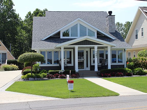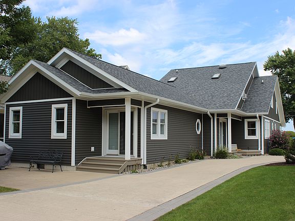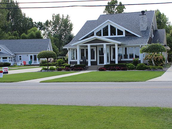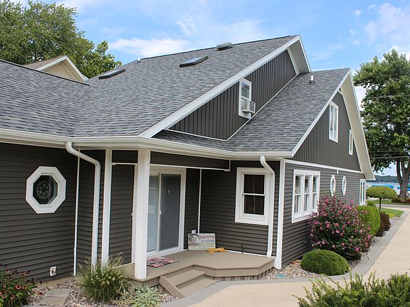 Spotless! This turn key home will surely impress. Nothing to do but relax and enjoy. Conveniently located close to town with city water and sewer. All new roof on house and garage (complete tear-off with transferable warranty), siding, soffits, fascia, columns, window trim and gutters in 2014! Property is large and on level ground. concrete drive with additional gravel and concrete pad in rear for extra parking. Expansive back yard for activities or overflow parking. This home is an entertainers dream. Large kitchen with double oven and gas cooktop. Living room offers vaulted ceilings, a beautiful fireplace and great views of the lake. Main floor master is sure to please with jetted tub and tiled walk in shower. Two bedrooms upstairs and a sitting room and full bath. Large 26x48 heated garage. Too much to list. Truly a must see!