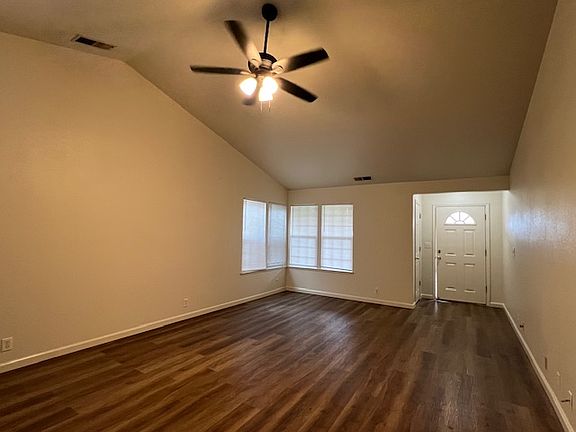 This centrally located 3-bedroom, 2-bathroom home, offers brand new exterior paint (Being done, weather permitting), newer carpet in bedrooms and LVP flooring throughout the rest of the home. Kitchen offers white appliances, gas stove, dishwasher, and refrigerator provided, but not warranted. Central HVAC, ceiling fans, and new blinds. Double door primary entrance, with lots of storage.Indoor laundry room with hook ups, 2 car garage, and covered back patio perfect for springtime entertaining. 12 month lease, Renters insurance required. One small pet considered with additional monthly pet rent of $50.00, breed restrictions apply. A Must See! , Ste.We do not charge an application fee, it is FREE! **Exterior Pictures to follow once exterior painting has been done.