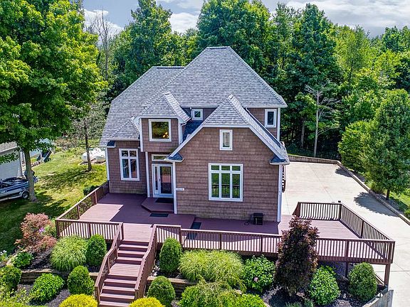 Contingent offer accepted - will accept back up offers. Best of both worlds! Charm & Elegance wrapped together with sunny views from every window in the lovely Ramblewood neighborhood on Big Long Lake. Custom built quality home on a large corner lot with tons of parking. Quiet backyard lined by woods is perfect for barbecues, & outdoor entertaining. Inside are lots of hardwood floors & vaulted ceilings. Main level offers a very open concept kitchen/dining/living area, large master suite and beautiful office/den. Upstairs offers 3 large bedrooms and a full bathroom. Downstairs is an awesome great room for movies or gaming, a large laundry room, full bathroom and 2 car attached garage. The association pier is deeded and shared to each backlot getting a boat slip. Th association frontage is 60' wide. Big Long Lake is an all sports lake with 365 acres of fresh clean water. The association also includes 1 storage unit, and large garden area for residents. This location is a convenient commute to Fort Wayne, Auburn, Kendallville or any of the small towns in the area.