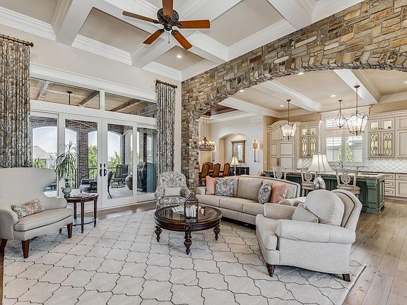 Incredible home with every possible amenity and convenience. Modern elegance and beauty are just some of the many adjectives to describe this spectacular home. Gorgeous wood floors throughout, incredible woodwork/crown molding and multiple fireplaces are just some of the wonderful features! The main floor boasts a spacious living room with a wood burning fireplace with custom mantel, custom bookcase cabinets, stone archway, box beamed ceilings and wood floors, dining room with wood floors wrapped in windows overlooking the backyard & a gourmet kitchen with wood floors, Thermador range, refrigerator & dishwasher, porcelain farmhouse sink, granite counter tops, pot filler, extra large walk-in pantry with appliance center and a desk & beamed ceiling. Master suite features a spectacular master bath with heated tile floors, Carrara marble counters, walk-in steam shower with a barrel ceiling and a custom glass transom, tub and huge walk-in closet with dresser island. Adjacent to the master closet is a large laundry room with sink, quartz counters & custom cabinetry. Guest bedroom with private bath, beamed cathedral ceiling & hardwood floors. A powder room & drop zone at back door complete the main floor. Plantation shutters, solid wood doors throughout & all bedrooms have walk-in closets! Finished walk-out basement has a wonderful rec room with a fireplace & built-ins, huge wet bar, 2 bedrooms both with private baths, powder bath, theater room and storage. This home sits on a beautiful lot with mature landscaping, wrought iron fencing and also boasts a screened upper deck with travertine flooring, cedar plank beamed ceiling & stone fireplace. The exterior has a screened lower patio, 3 car garage with a sink, Anderson 400 windows, & concrete tile roof. All in a GATED community!