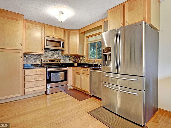 Beautifully updated spacious split-entry home with large bedrooms, 3 fireplaces, newer bamboo floors, newer kitchen cabinets, remodeled baths and newer interior doors. Complete privacy in the back yard as it backs up to wetlands and park. Brand new siding and roof. Very convenient location close to schools, shopping, major roads. Hurry and see today!