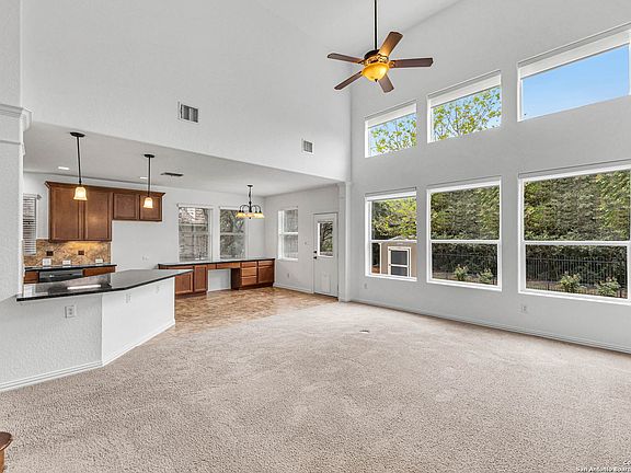 This traditional home is nestled on a quiet cul de sac lot, perfectly situated to offer tranquil views of a large, heavily treed greenbelt. High ceilings and recessed lighting create an airy and bright ambiance throughout the home, accentuating the spaciousness and allowing natural light to fill every corner. The main floor features an office/craft room adorned with beautiful white cabinets, perfect for those working remotely. The kitchen features black granite countertops, abundant cabinetry, a convenient breakfast bar, and a dining area for enjoying everyday meals. The living area is a focal point of the home, with its soaring ceiling and oversized windows that flood the space with natural light, while offering picturesque views of the heavily treed greenbelt and lush greenery outside. The primary room offers a private bath complete with a dual vanity, relaxing garden tub, walk-in shower and a spacious walk-in closet. Upstairs are 4 bedrooms and 2 full baths, if don't need all the bedrooms can easily convert one of the bedrooms into a game room. Outdoors, enjoy your patio overlooking the lush surroundings, as this residence offers an unparalleled sense of privacy and serenity with no neighbors behind in sight.