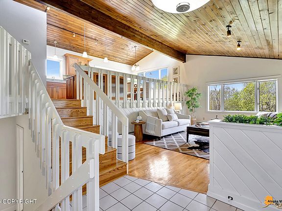 Situated on a 1/2-acre of mid-Hillside in one of Anchorage's most coveted neighborhoods, this home is the perfect blend of Alaskan beauty outside and modern updates inside. Enjoy open living spaces filled with natural light, a layout ideal for both entertaining and comfortable family living. Vaulted T-n-G ceilings, oak hardwood floors, updated kitchen and baths, two living areas, manicured lot with south and west exposure, mature landscaping, ample parking, and expanded driveway with room for RV parking. Yearly dues include: Water and community well maintenance Annual springtime yard debris removal Street maintenance Snow removal