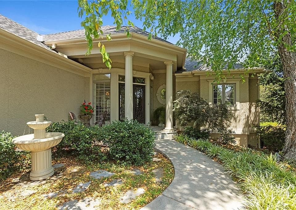 --Perfectly situated on the 2nd Fairway - This Staley Farms Reverse has THE BEST LOT! Every window across the back presents a spectacular view! Play golf or watch golf this will be the home of the season! Tucked into a quiet cul-de-sac with plenty of guest parking along the length of the lot and side. Home landscaped from street view but, inviting double door entry with fountain says, "WELCOME!"  Open concept design. Gorgeous, sweeping, wrought iron staircase separates the formal dining with its custom designed wood and tiled stone floor from the great room & kitchen. Meticulously updated and recently painted the trimmed columns and wood floors divide the living spaces. Tall ceilings and plantation shuttered windows add to the quality and design. Enjoy breakfast with a view from the table inside or the screened in porch outside. Granite island kitchen with gas stove for the "chef" in all of us -- Convenient walk-in pantry with adjustable spice rack and plenty of shelves takes the clutter out of the creative space. Lower level offers two additional bedrooms each with direct access to a bathroom. The wet bar has a discretely hidden microwave, dishwasher, stainless steel sink and top lit glass cabinetry to show off your glassware. Hidden from view is a full size refrigerator alcove. Wine closet behind decorative wrought iron. Take the party outside from rec room bar area to large flagstone courtyard. Covered area for year-round grilling and oversized natural stone patio framed by landscaping will accommodate multiple tables or overflow seating.  Add a firepit to this area and enjoy the view. Main floor master suite has a lovely bathroom and great walk-in closet. Main floor laundry room. Come and be a part of the prestigious Staley Farms community where your family can enjoy the resort-style pool, pickleball, tennis, clubhouse with fitness center and basketball - and of course, the championship golf course!!! Roof is just 3 months old.