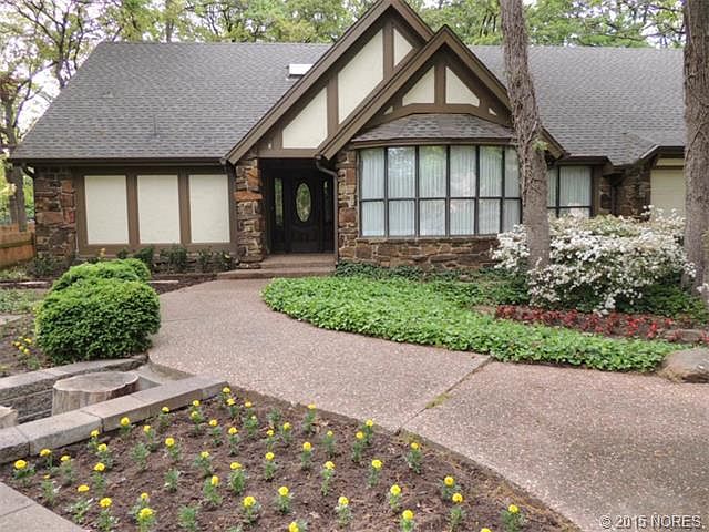 Beautiful impeccably maintained stone two home on a large lot in the desirable Jenks Southeast School District. The home sits in a park like setting with great curb appeal, towering Oak trees and a lush green lawn with extensive landscaping.