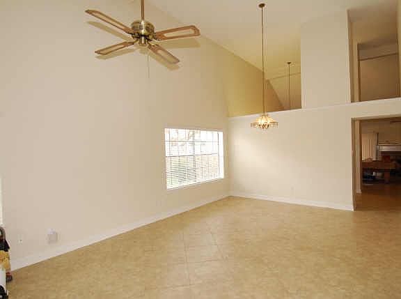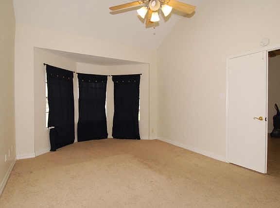 The four-bedroom home features an open floor plan, covered front porch, and dual formal entry. High ceilings in formals, kitchen, and family room with tile flooring. Brick hearth fireplace. Ceiling fans throughout most of the house. The sliding door opens to the backyard. The master suite includes a massive bathroom! Major remodeling will be done on both bathrooms.