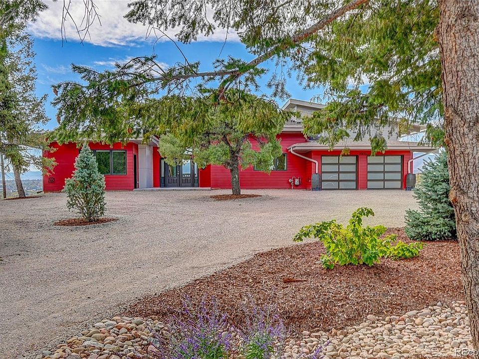 The front of the home showcases a modern facade with striking architectural features providing a stylish and open entrance via the circular driveway. Step inside and you'll be greeted by a spacious great room, an open clean contemporary floorplan, full folding glass doors, a fireplace, and a vaulted ceiling. This space is perfect for entertaining guests or family as the outdoor space is melded with the indoor space with unobstructed Mountain Views galore. The adjacent Gourmet Kitchen is equipped with High End Stainless Steel Appliances with Custom Cabinetry surrounding the Large Island. Custom built in 2021 using SIPS construction designed by renowned architect Charles Cannon. This remarkable contemporary home offers unparalleled luxury and energy efficiency complete with a 7 Car Garage offering endless possibilities to the Automobile or "Toy" enthusiast. With 4 bedrooms, 5 bathrooms, this property boasts a generous 4525 sqft of living space including a mother-law apartment in the Walk-out Lower Level sitting on almost a full acre of land allowing for equestrian pursuits. Located in a desirable community of Carmody Heights, this property offers a serene and peaceful environment. The community amenities include parks, shopping centers, schools, dining, entertainment, trails, community center, indoor ice arena and easy access to major highways as well as Belmar, Downtown Denver and Mountains to the West.