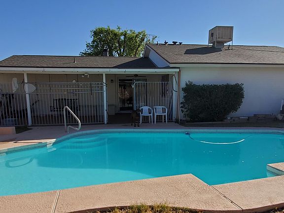 * Great 3 bedroom 1.75 bath brick-faced block home, no HOA, private diving pool, fireplace. Good bones, fenced in both the front with chain link and in the back with block, patio is fenced off from the backyard making it safer, evap cooler plus central a/c. Roof replaced in 2018, water heater replaced in 2008. Close to shopping and entertainment area.