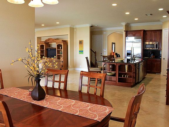***3% commission for buyer’s agent.*** Well-kept, luxurious and priced to sell, this beautiful lakefront home features 5 private bedrooms, 3.5 baths, an office, a den and builder upgrades, including travertine floors and marble bathroom countertops. The kitchen is adjacent to the dining room and spacious family room, boasting a large granite center island, walk-in pantry, double ovens and KitchenAid appliances. Up the hardwood stairs you’ll find an open layout featuring the laundry room, a Jack and Jill bathroom and 2 large master walk-in closets. There is a clubhouse, an Olympic sized community heated resort pool, tennis court and fitness center conveniently located across the street. Home is located within 3 miles of shopping and equestrian venues. Additional features: impact doors and windows, central vac. Buyers with agents welcome.