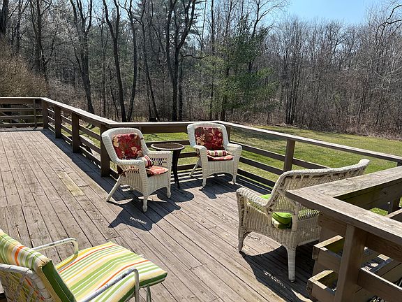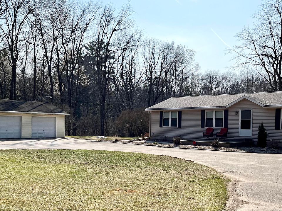 Cozy move in ready ranch, with plenty of property to explore. Many updates including, windows, siding, & roof. Master suite with private bath, 2nd bedroom was originally 2 bedrooms , owner combined to make a large bedroom. Dining area with slider to deck. Finished walkout basement with 1/2 bath and large family room. Slider to patio. Potential for a 3rd bedroom down here as well. Main floor laundry for convenience, but could also be moved downstairs. Asphalt driveway, 3 stall detached garage. Under ground sprinkling and a whole house hardwired generator a the amenities this home offers. Plenty of wildlife on this 7.5 acre parcel with a creek meandering through the back. Appliances included. Multiple offers seller has requested highest and best due by 4/12 at 11 am
