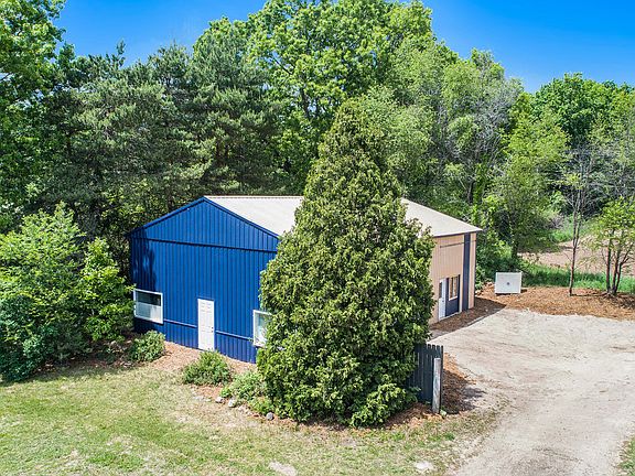 This home provides three large bedrooms, 2 with walk in closets. Two bathrooms with a hot tub in the master suite. 1568 square feet featuring 13 foot cathedral ceilings and includes a bonus loft/play area. Partially finished basement with family room, potential two bedrooms, and lots of storage space. New steel roof and 5 inch well in 2017. Energy efficient, low heat and electric bills. Mature backyard includes herbs, flowers, and wild berries for wildlife and a she shed. Also includes an apple tree and concord grape vines. 32 x 52 foot Pole Building with 14 foot sidewalls. 12 x 30 heated office area in front