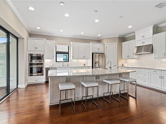Simply the best of everything is here and waiting for you now! Pallazio floor plan with extended tandem garage for 3 car parking. Over sized lot with preserve view. Gourmet kitchen with all upgraded appliance package by GE Cafe. Quartz counter tops, extended covered lanai with gas connections and outdoor speakers. Hardwood floors in master and main living areas. California closets in all bedrooms. Hunter Douglas motorized blinds. This is truly a spectacular home that should not be missed. Gated community with a full resort lifestyle. Community pool, Fitness center and more.