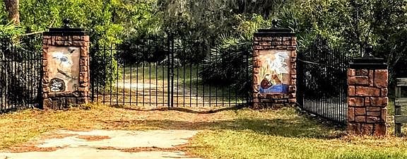 This lakeside retreat along the shores of Lake Marion is sited on over five acres. You can enjoy the views from your own observation deck along the shores of Lake Marion. The homes character offers a beautiful stone façade and decorative arched wooden entrance door. The spacious living room features wood parquet flooring and gorgeous lakefront views. The eat-in kitchen offers a preparation island, Bosch dishwasher and breakfast nook with a built-in storage bench. In the family room, there is a wood burning fireplace with a stacked stone façade overlooking the backyard and its park like setting. The master suite offers an oversized window with wooded views, dual closet and patio access. The in-law suite features a private entrance, living room with Florida yellow pine ceilings and bedroom suite. Other amenities include a laundry room, Florida room, private gated entrance, dock and boat house. This unique property also features several outdoor patio areas and winding paths nestled amongst a tropical woodland setting.