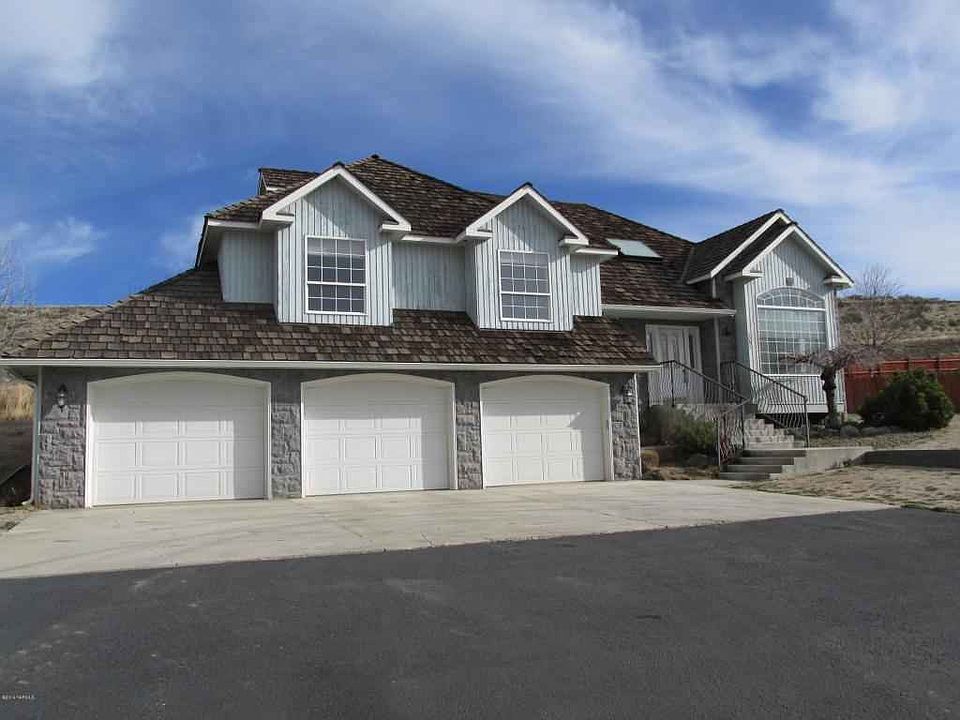 Beautiful 3 BR with stonework siding and wood on almost 1 acre, great view. New carpet & hardwood floors & new Kitchen counter. Pantry & Kit. eat area, family room w/fp. Gorgeous entry w/sky lights & artful stairs and rails. 3-car garage w/ 1/2 of 3rd stall made to an office. Formal DR covered patio. Master w/ walk in closet, tub, shower & double sinks & bay windows. UGS plumbed for vacuum and canned lighting. Bonus room could be used as a 4th bedroom.