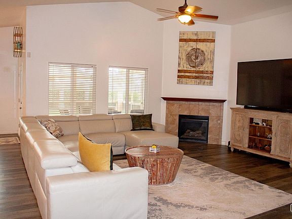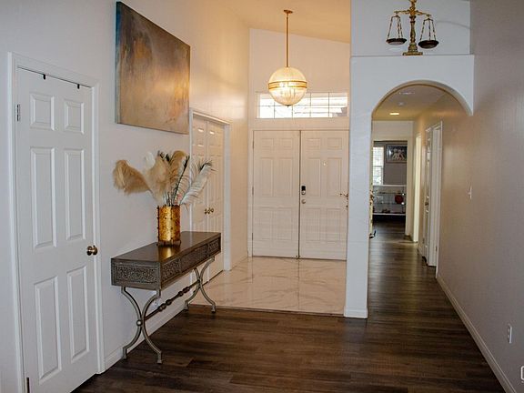 What a Beautiful home with courtyard front entry. You will love this split wing home with 4 bedrooms, 2.75 baths and an oversized 2 car garage with epoxy flooring. This property features an open layout with vaulted ceilings, spacious great room with a fireplace, formal dining area and an indoor laundry room with extra storage space. This lovely upgraded kitchen offers, Quartz countertops, stainless steel appliances, copper farmhouse sinks and an island. The master bedroom is spacious with access to the backyard and a full bather room with double sinks, separate tub plus shower and a walk-in closet. One bedroom is used as an office, another bedroom has a separate entrance that is perfect for in-law quarters or guest access. The backyard has an enclosed patio perfect for all your gatherings and mature landscaping.