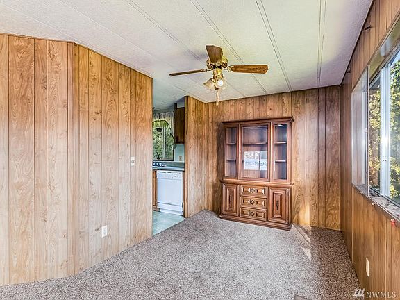Come and see this move-in ready manufactured home in Everett! 1,344 sq ft living space on a 10,019 sq ft lot. This 3 bedroom, 2 bathroom home is a great starter home that features a comfortable layout and spacious living room/dining space. Ceiling fans and a fireplace are added features. The 1 car garage and shop/storage behind the house is a fantastic bonus. A large yard also offers privacy from neighbors. Why rent when you can own! Estate Sale, Home Sold As-Is.