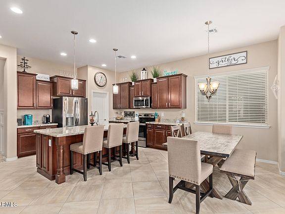 Seller NOW Offering $10,000 Concession to Buyer Closing Costs or Interest Rate Buy Down with February Closing!! Fantastic LOCATION & Private POOL!! Welcome to your dream home in the coveted Eastmark Masterplan Community of Mesa, AZ! This stunning residence offers a perfect blend of luxury, comfort, and entertainment, making it an ideal haven for you and your family. Step into your private paradise with a south-facing yard, boasting a sparkling modern play pool surrounded by travertine decking and lush artificial turf that offers low-maintenance desertscape, Enjoy the Arizona sunshine splashing in the pool or the large covered patio for shade creating a serene oasis for both relaxation and entertainment. The interior of this home is a masterpiece of design and functionality. The open concept living space seamlessly connects the great room, dining area, and a chef's kitchen that will leave you in awe. The kitchen features rich wood cabinetry, a grand center island with a breakfast bar, granite countertops, and a stainless-steel appliance package. The expansive walk-in pantry adds both convenience and storage space. The first floor welcomes you with bright, neutral decorator paint and diagonally laid tile, creating an inviting atmosphere. The main floor den and great room are adorned with custom millwork walls, adding a touch of elegance and uniqueness to these beautiful spaces.