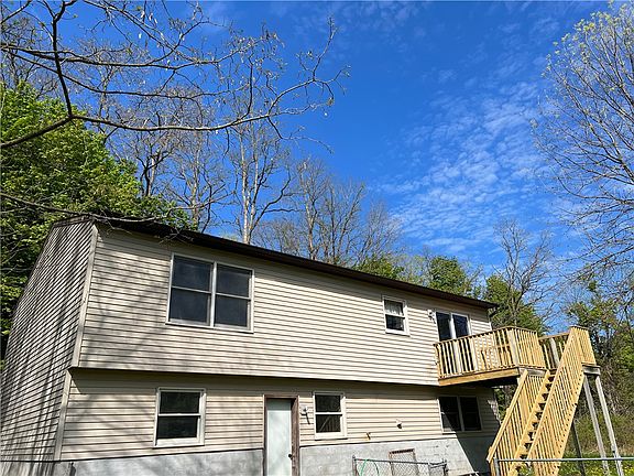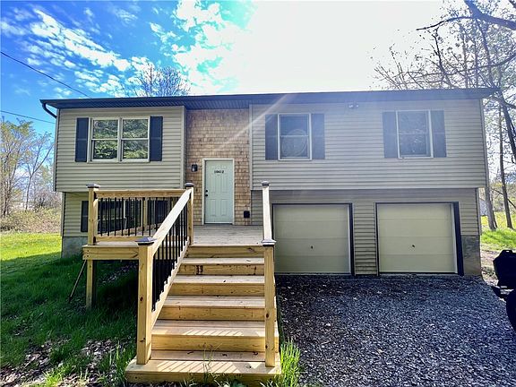 Lovely renovated raised ranch set back and situated on 5 acres of country land. Newly renovated horse barn with new siding,3 stalls & new door .This home has new siding ,new front porch & new door. Enter through the new front door enough space for coats & shoes . New carpeting leads you to the 1st level. All new flooring, fresh paint and fixtures throughout the entire home. Vaulted ceilings in the living room & dining area nice and open.The kitchen has brand new cabinets, counter tops, backsplash & flooring.No current Appliances but could be negotiable .Three good size bedrooms w/ fresh paint and new flooring. The basement is finished and would make a great family room or rec room it has a full bath w/ stand up shower, new vanity & toilet. Laundry and storage galore. The two car attached garage have new electric doors. The long new gravel driveway has a parking area up top. This home is set back and private.