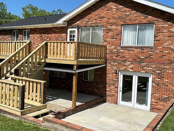 A rare opportunity to get into Cedar Knoll on a gorgeous lot with beautiful green space. 4 bedrooms; 2.5 baths; formal living room and dining room; kitchen with all the conveniences and huge family room with gorgeous stone wood-burning fireplace. Extra-large 2-C garage; walk out from family room onto nice patio plus covered porch area. Main level has brand new deck of ultimate quality with metal roof underneath that also covers lockable storage shed. New roof shingles installed 4/20; New furnace and AC unit 5/19; new pressure water valve, main shut-off valve for water, and front valve installed 2/22. Great neighborhood for walking; close to I-64 and to schools & healthcare. Kids will love being within walking distance of restaurants and Malibu Jacks!!
