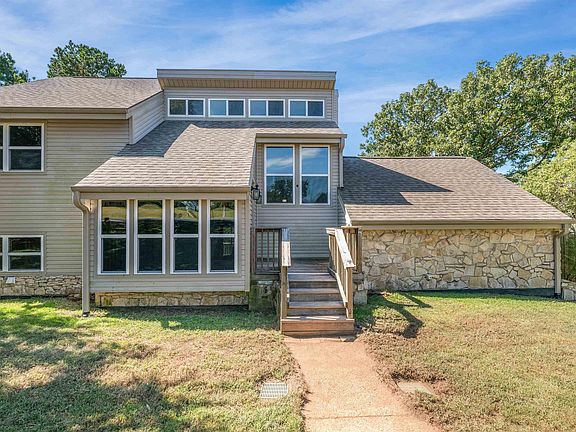Come and see this exceptional 3 bedroom, 2.5 bathroom home located on a quiet 1.5 acres in highly sought after WhitehouseISD. Striking mid-century modern architecture adds depth and character while maintaining a cozy, inviting atmosphere. Large windows expand across the back of the home, offering a serene view of the surrounding woods and enhance the organic features found throughout the home. Soaring vaulted ceilings bring an open airy feeling and highlight the stone fireplace and wood-planked walls while further connecting the interior with the natural surroundings. Built-in cabinets keep the laundry room organized and provide enough space for any surplus pantry items. The kitchen features stainless appliances, ample counter space with additional room for barstool seating, and conveniently opens to the dining area for large family gatherings. Entertain outdoors on the huge covered porch or spend quiet peaceful evenings watching the wildlife from the privacy of your lush, wooded backyard. The spacious primary bedroom is located on the main floor, with a walk-in closet, jetted bathtub, vaulted ceilings, an office nook and enough space for additional bedroom furniture or a sitting area. Floor-to-ceiling windows bring in natural light and a sliding door offers private access to the back porch. Upstairs there are two freshly painted guest rooms with large closets, brand new LVP flooring and a bathroom with dual vanities. The loft area overlooks the great room ensuring that the entire space feels open. A 2 car side-entry garage is equipped with a functioning workstation and storage cabinets. Keep lawn care equipment easily accessible in the attached storage room and always have space to park your cars. Don’t miss the opportunity to make this home yours!