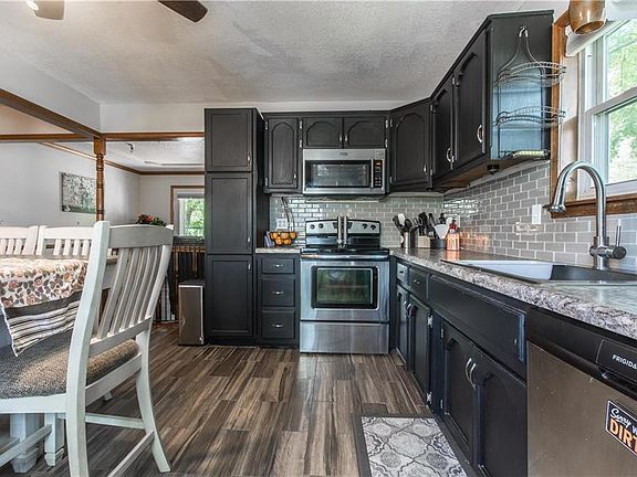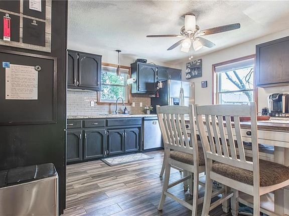 Split entry home with 4 bedrooms and 3 bathrooms. New exterior & interior paint! Extra large driveway w/ ample parking & large mature trees! The open living/dining/kitchen area has beautiful new floors, fireplace, new counters & tile backsplash, stainless appliances. Walk out to a deck overlooking a large fenced yard w/ fire pit & stamped patio area. 3 guest rooms and 2 full baths finish the main level. Downstairs find the master suite featuring walk-in closet, double vanities, tile and whirlpool tub. Updates! Newer garage door/openers (2013). Newer roof (2012). New exterior and interior paint (2019). New flooring (2019). Kitchen updated (2017).