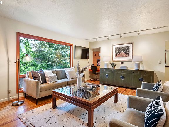 This mid-century marvel is more than a home; it's a lifestyle. Perfect for those seeking a harmonious blend of nature and modern living, this property invites you to experience the best of Portland's wooded wonderland. Nestled amidst the serene beauty of Tryon Creek, this architectural gem affectionately named Casa Cafe, offers modern comfort and artistic charm. Embrace the tranquil woods while enjoying a host of contemporary amenities in this meticulously updated and maintained retreat. Comfortable main level living layout with picturesque views of the surrounding forest and garden. A modern and light-filled kitchen flows effortlessly into the inviting dining and living rooms. An adjacent screened-in porch is perfect for enjoying the outdoors year-round, where birdwatching and wildlife observation are enjoyed in comfort. Hardwood floors and tongue and groove cedar accents enhance the beautiful mid-century aesthetic. Enjoy your very own private sauna, ideal for relaxation and wellness. Two wood-burning fireplaces create a cozy warm ambiance upstairs and down. Versatile spaces suitable for home office or studio along with a workshop that looks like a piece of art and an expansive laundry or craft room; the possibilities are endless. Private, secluded home, surrounded by lush greenery and a peaceful garden oasis with a diverse array of native plants and flowers. Enchanting pathways and multiple sitting areas allow for quiet reflection or comfortable gathering areas for parties. Easily explore trails and nature in the 650 acre Tryon Creek State Natural Area, with a park entrance an easy walk down the street. Convenient access to downtown Portland or Lake Oswego. Come see what life is like if you had your own wellness retreat to enjoy each and every day, do not let this one slip away! [Home Energy Score = 9. HES Report at https://rpt.greenbuildingregistry.com/hes/OR10101065]