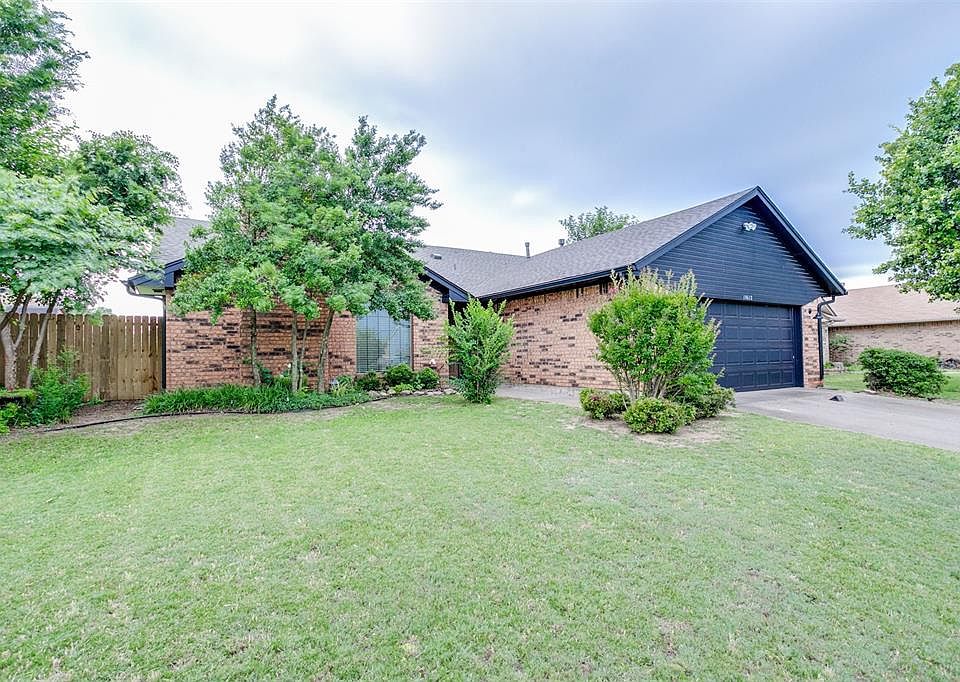 Choctaw schools ~ Newer roofing, paint and fixtures and luxury LVP flooring throughout ~ living area has vaulted ceilings and a fireplace with gas logs ~ kitchen offers warm oak cabinetry with stainless steel appliances and granite countertops and large pantry ~ master has exterior door for backyard access ~ master bathroom has his and her sinks and his and her closets ~ backyard has privacy and trees ~ Carrier HVAC unit ~ make your appointment to take a look at this one.....