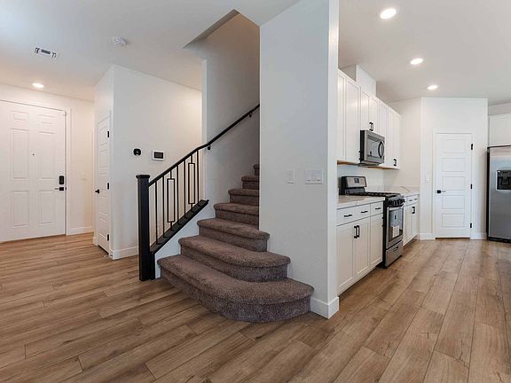 Welcome to your dream home located in a desirable gated community! This residence boasts a spacious open living space with neutral-tone wood-like flooring throughout, inviting an abundance of natural light. The kitchen features a stunning waterfall marble counter island with seating, modern stainless steel appliances, accent lighting, custom cabinets, and sleek black hardware. A convenient bedroom is located downstairs, while the upstairs area includes four cozy carpeted bedrooms with ceiling fans and two-tone paint, along with a versatile loft. The master suite includes a generous walk-in closet and a luxurious master bathroom with a walk-in shower, garden tub, dual sinks with quartz countertops, and coordinating black hardware. The backyard is designed for easy maintenance with pavers and artificial grass. CHECK FOR APPLICATION STATUS: Allow one of our BCRG Rental Specialists to assist you in finding your next home for FREE!