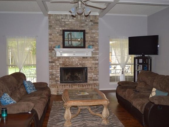 Fresh paint, new roof, new flooring, and more at 10613 Apache Dr! This 3 bedroom, 2 bath home has a large living area with wood burning fireplace and coffered ceiling. Casual dining area has vaulted ceiling and opens to the kitchen. Master suite is spacious and has dual sinks and closets. Big back yard with storage shed. Water heater and HVAC less than 4 years old!