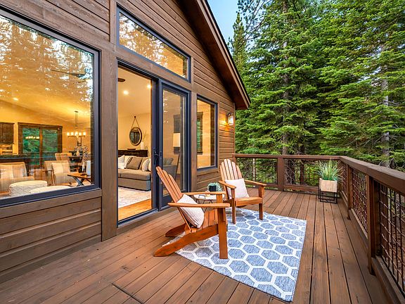 Set at the back of the community on a quiet, wooded homesite, 10613 Carson Range captures everything a mountain cabin should—privacy, forested views, and a timeless sense of comfort. Backing to open space with more than 26 miles of scenic trails right out the backyard, this home offers a rare connection to nature paired with elevated mountain living. The functional reverse floor plan places the main living spaces upstairs beneath vaulted ceilings and rustic wood beams. An open-concept kitchen, dining, and great room gather around a classic stone fireplace, creating a warm, welcoming atmosphere for everyday living or cozy winter evenings. The chef’s kitchen is finished with premium appliances—including a Wolf range and Sub-Zero refrigerator—and thoughtfully upgraded details throughout. Front and rear decks let you enjoy morning sun, evening alpenglow, and peaceful forest surroundings. With four spacious bedrooms, the home is designed for comfort and flexibility. Downstairs, the media/game room opens to a large stone patio with a built-in fire pit and a serene outdoor setting—ideal for hosting or unwinding after a day on the trails. The oversized, extra-deep garage provides generous storage for skis, bikes, and all your mountain gear. Just one hole away from Schaffer’s Mill’s private amenities—including the resort-style pool, fitness center, and The Sawyer restaurant, now managed by Troon Privé—and only minutes from downtown Truckee, this home blends timeless design with an exceptional location. Furnishings are negotiable for an effortless transition. Bonus: Schaffer’s Mill allows short-term rentals, and Placer County permits are currently easy to obtain—creating a strong opportunity for year-round enjoyment and bonus depreciation.
