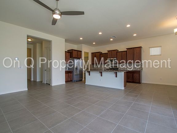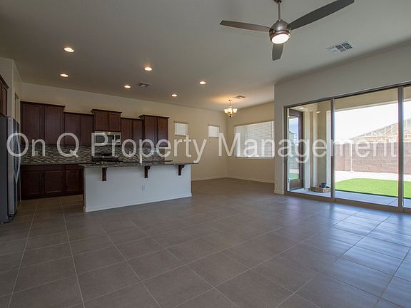 Newer 3 bedroom 2.5 bath home in amazing Eastmark. Features include an open floor plan, spacious kitchen with upgraded cabinetry, stainless steel appliances, custom backsplash and walk in pantry. Neutral paint and flooring throughout. Master bedroom with walk in closet, and full bath with walk in shower. Large covered patio and grassy yard. Three car garage. Community amenities include lush parks, pool, rec center and library. This property allows self guided viewing without an appointment. Contact for details.