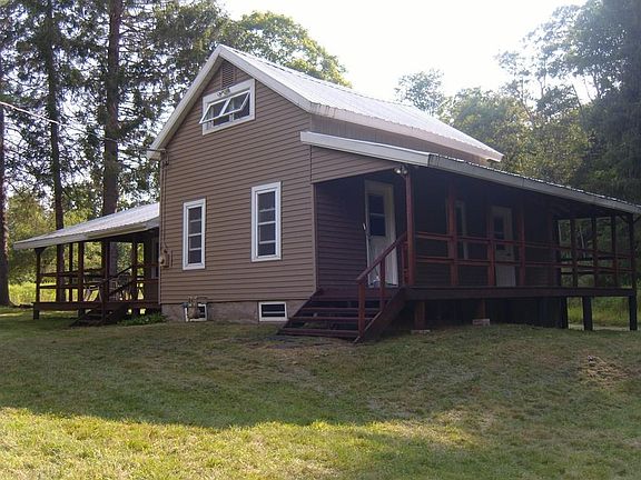 LOCATION, LOCATION, LOCATION!! Snowmobile right from your cabin that you arrived at by crossing the stream over your own sturdy, private bridge. When spring comes sit on the covered deck on three sides of this cabin & listen to the stream flow by while birds sing sweetly in the trees & the deer(sorry, no antelope!) play in the grass. The roomy 2-3 bedroom cottage offers ample space. The upstairs rooms still need a coat of paint, but that allows YOU to choose YOUR own color scheme. Perhaps YOU might want to add some more kitchen cabinets, but that is YOUR choice. Several fruit trees have already been planted out near the spring. This home is the 2nd one on the dirt road after turning off the paved road & is the last one with natural gas. Thousands of acres of state land nearby and yet only 7 miles to town! ATV's & snowmobiles are permitted on the road. Purchased "as is" and being sold the same way, but totally livable.