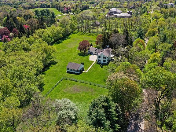 Wonderful setting for this revitalized farm house. Completely expanded and restored in 2004, this home sits on 5 beautiful acres and has the original bank barn from back in the day. The home has a traditional floorplan with hardwood floors, 3 fireplaces and is in excellent condition. Coyote Farm features a fantastic guest cottage with kitchenette, full bath and volume ceilings, perfect for the home office or in-law suite. The main house has 4 bedrooms, 1st floor laundry and attached garage. The master suite features a fireplace, private bath and walk in closet. Two additional bedrooms and hall bath round out the upstairs. There is a finished basement that still shows one of the original stone walls from the foundation. The 4th bedroom/sewing room has its own full bath. Generous sized rec room and plenty of storage. Outside, there is a tool building adjacent to the barn and the barn has an upstairs and lower level. This is a great house and fantastic opportunity to be in the country.