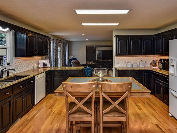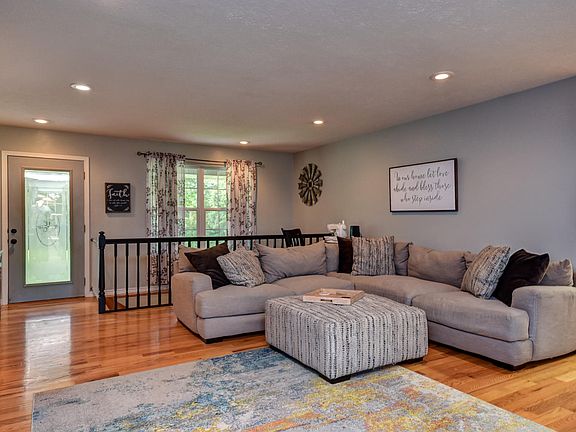 MUST SEE. Exceptional 5 acre property. Park like setting w/grand oak trees.This Home features 6 Bedrooms. 3 are in the basement with large closets , but no windows. 3 upstairs 2 of those are MASTERS...The owners have put so much work in. Finishing most of the basement. Lots of fresh paint.And also the kitchen cabinets.Great open floor plan.Beautiful HARDWOOD flooring throughout most of the main floor. Tons of kitchen and dinning space. Granite counter tops With lots of cabinets.Walkout basement has a wonderful 2nd living area & french doors w/covered patio. Deck the full length of the home great for entertaining. lots of deer & turkey.NEW ROOF 2017. Great detached garage/workshop w/ room for 6 vehicles & another shop behind it for more storage,mowers,tools or whatever you choose.