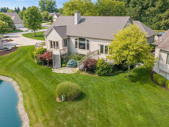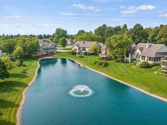 Welcome to The Villas of La Cabreah, where luxury living meets convenience and ease. Nestled in the exquisite neighborhood of La Cabreah, this stunning corner lot property sits on over a quarter of an acre, making it one of the largest homes in the community. Experience easy living at its finest, as exterior maintenance is taken care of for you. HOAs include trash removal, complete front flower beds upkeep and mulching, lawn care and snow removal. The roof was fully replaced just three years ago, ensuring worry-free years to come. The house has undergone recent upgrades, with high-end new solid wood plank floors throughout. The kitchen has been fully updated, boasting new top-of-the-line equipment and a stylish travertine backsplash, making it a culinary haven for any chef. The kitchen cabinets are designed for convenience, with rollout shelving for easy access to all your essentials. Step into the spacious four seasons room, complete with a wet bar. Panoramic windows allow natural light to flood the space while providing breathtaking views of the serene pond and its tranquil fountains. The master bedroom is a private oasis, featuring its own deck overlooking the beautiful pond. With ample walking closets and high ceilings throughout the house, storage and an airy atmosphere are ensured. Entertainment is at its finest here, with a fully equipped gym/movie theater room, complete with a pool table and surround sound system. Residents enjoy the added bonus of being in the highly rated resort-style community of La Cabreah. Take advantage of direct access to the Pufferbelly Trail system steps away, ideal for those who enjoy outdoor activities. The YMCA and Salomon Farms are also within walking distance. You'll find everything you need just a stroll away, with shopping centers nearby, offering a seamless and convenient lifestyle. This property falls within the esteemed Northwest Allen County Schools. The home's elevator provides easy access to the lower level, enhancing accessibility throughout the residence. Walk-in closets with built-in shoe shelves in the master bedroom ensure organization and space for your wardrobe collection. With its ideal location, sophisticated features, and resort-like amenities, The Villas of La Cabreah is an uparalleled opportunity to experience luxury living at its finest.