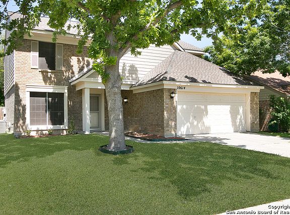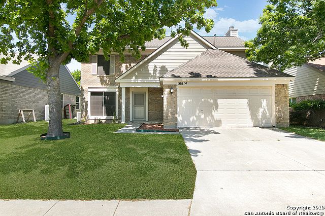 This well maintained 3 bed 2.5 bath home is centrally located, just minutes to Randolph, major shopping, dining, 35 and 1604. Boasts 2 living areas with a formal dining room. Gas cooking Kitchen opens up to the family room with a gas fireplace. The bedrooms are upstairs with a loft. Master suite includes his and hers vanity with walk in shower and garden tub. Enjoy the large back yard with big mature trees and a shed for extra storage. Solar screens all around with roof and siding less than 5 yrs old.