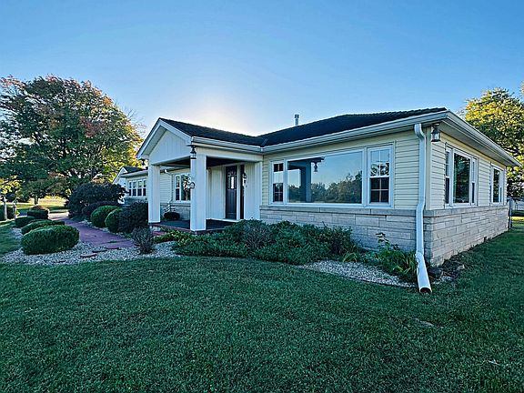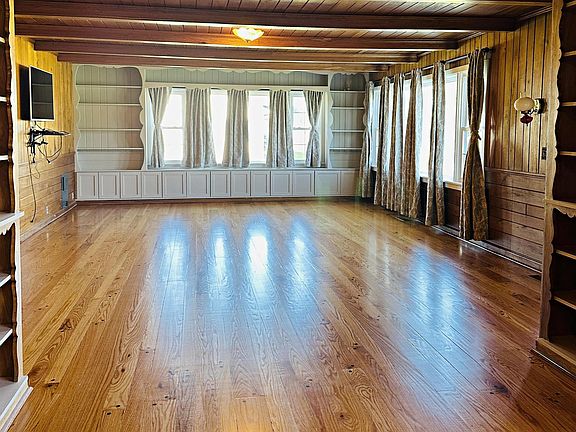 Gorgeous three bedroom, two bath home on 3.23 acres +/- conveniently located on the north edge of town in North Daviess School district on a paved road. This well maintained home has tongue and groove wood walls, beamed ceilings featuring cherry, pine, and white walnut wood, and beautiful red oak hardwood flooring with mahogany plugs. The large kitchen has stainless appliances, custom cherry cabinets, Faus laminate flooring, and a fireplace. There is a built-in white walnut china cabinet in the dining area, den with fireplace, large main level laundry room with built-ins, enclosed sun porch, attached 2-car garage, detached shop/garage with electric & heat, newer metal shingle roof, updated windows, fenced back yard, and a swimming pool. Approximately 6 miles from I-69 exit is convenient for Crane employees.
