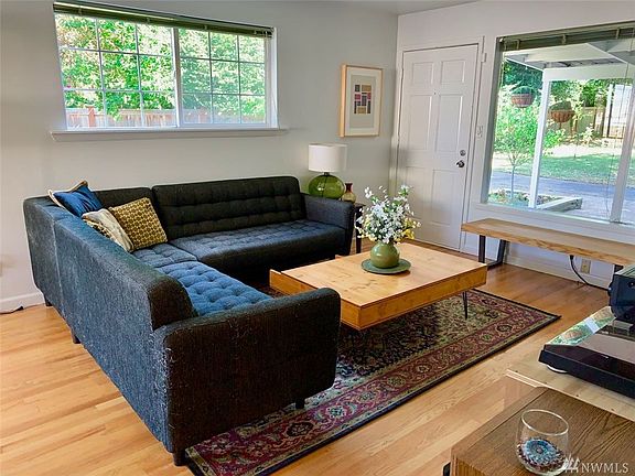 Light filled, updated/move-in ready, mid-century charmer! Great condo alternative and close to everything. Fir flooring, open living room with fireplace, open kitchen, carport, huge patio for entertaining. Large, partially fenced yard with mature plum, cherry trees and raised beds for gardening. Attached 55" LG HDTV in living room stays. Minutes to Kubota Gardens, the amazing nature trails in Lakeridge Park, and Skyway Library. Seattle living with quick access to Renton, 405, and I-5!