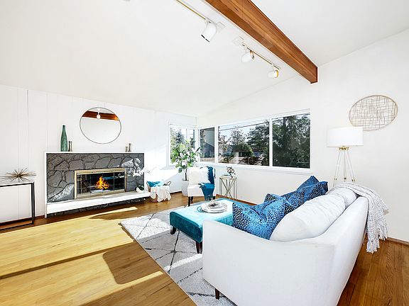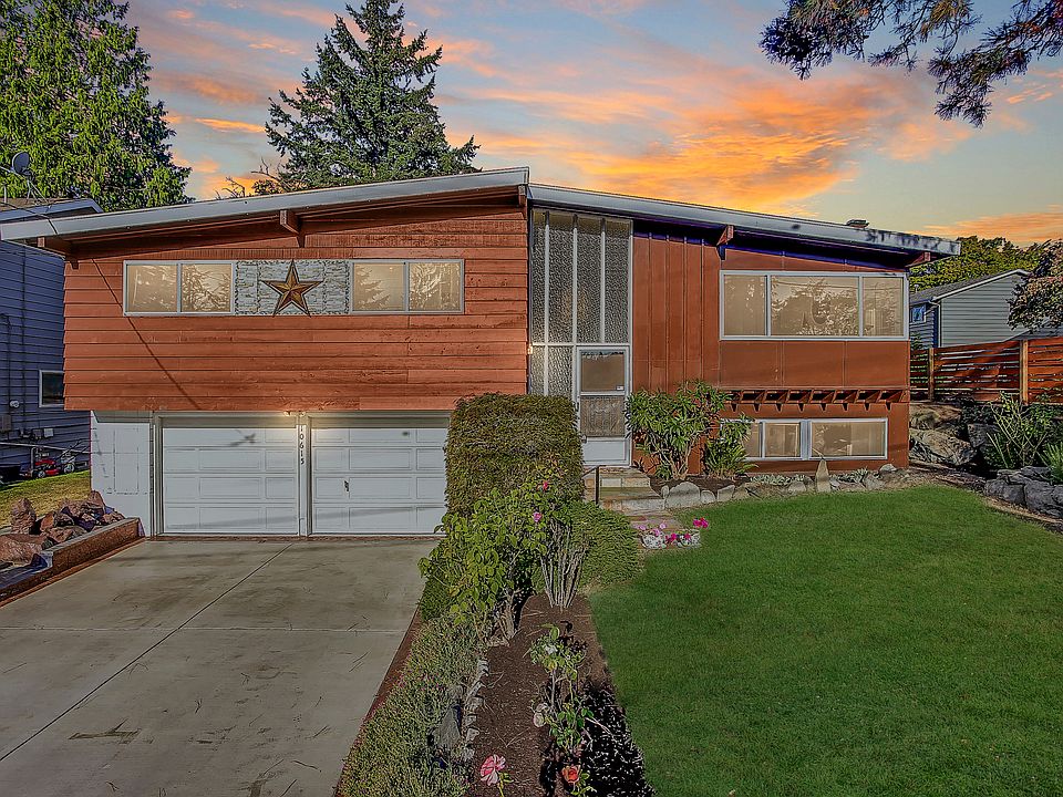 Mid-century modern filled with potential! Cozy hardwood floors and two fireplaces welcome you inside. Spacious rooms throughout are ideal for entertaining, and an added downstairs living room gives incredible functionality. Primary bedroom with ensuite serve as a quiet refuge with thoughtful woodwork. Period details offer a sense of classic living. Large laundry room and 2-car garage offer storage space, and a sizable yard with tiled cover patio is the perfect retreat.