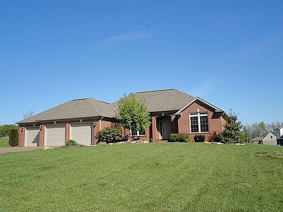 This three bedroom brick ranch sits quietly along the countryside in Hausmann Manor on a corner lot. Beautiful on a corner lot with three car attached garage and plenty of space on .83 acre. The split level design is perfect for your growing family, a large foyer area greets you with views of the dinig room, great room, breakfast area and kitchen bar. The master suite includes whirlpool tub, walk in closet and easy access to laundry room. The kitchen has an oversized pantry, spacious solid surface coun ters, island, plenty of cabinets and views of the great room and outdoors. This home has been well cared for and will be easily maintained.