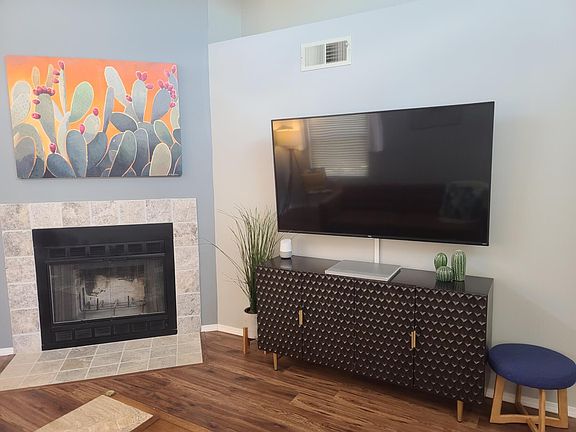 Sandia mountain viewsModern appliancesSpacious closetFenced backyardCovered patioRefrigerated air