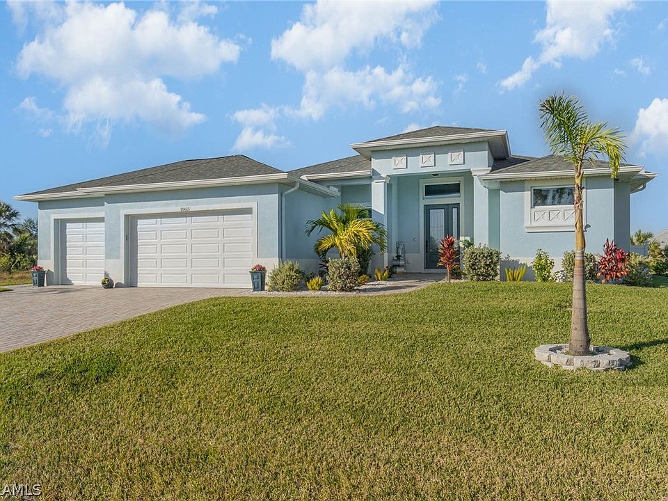 Boaters paradise with boat ramp & playground with voluntary low HOA Fee. This modern luxury 3-bedroom home on a double lot offers a spacious entertainers floor plan filled with porcelain plank tile flooring, coffered ceilings, and many other high-end finishes. Cook in the chef's kitchen lined with 42' cabinets, pull-out shelving, a farmer's sink, upgraded appliances, granite counters, and an oversized pantry. Gather loved ones in the living room or outdoors on 20'x50' pool deck with motorized screens overlooking the heated saltwater pool. The surrounding landscaping encapsulates Florida with an irrigated lawn, over 39 palms, and tropical plants! End your day within the main suite w/ a walk-in tile shower, dual sinks, and sliding door access to the pool. Amenities include hurricane windows, paver driveway, 3-car garage w/ epoxy flooring, walk-in closets, and a brand new noseum screen cage is on schedule to be installed. All that's left to do is to pack your bags and start a new adventure!