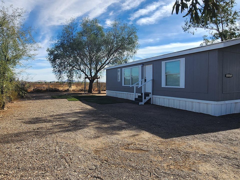 Move in ready, immaculate 3 bed, 2 bath, manufactured home has undergone a stunning full remodel. Freshly painted inside/out, new laminated flooring and vinyl plank on baths, new baseboards, and ceiling fans in all rooms. Open kitchen boasts new white cabinets, white granite tops, stainless steel range, microwave and dishwasher. Split floor plan, spacious walk in closets in all rooms, spacious master bedroom connecting to its own bath with new dual vanities and resurfaced tub/shower, hallway bathroom has new vanity & resurfaced tub. New water heater, updated plumbing and electric fixtures, brand new shingle roof and newer A/C unit. Huge corner yard with open views on the backyard and plenty space for toys, work vehicles or RV. NO HOA, great affordable option, financeable with 30 year conforming mortgages, a few minutes access from I-10 and Pinal Ave route AZ- 386. 35-40 minute drive from Chandler metro area. Come and see it soon !!